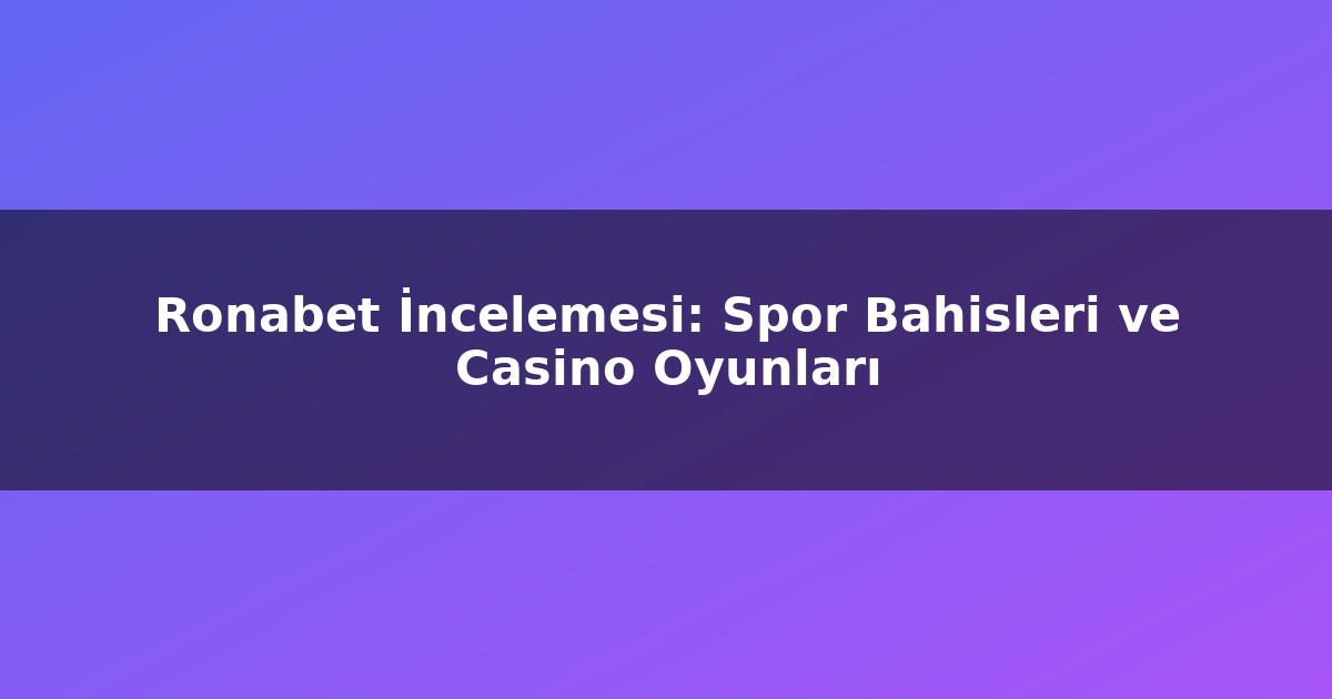 Ronabet İncelemesi: Spor Bahisleri ve Casino Oyunları